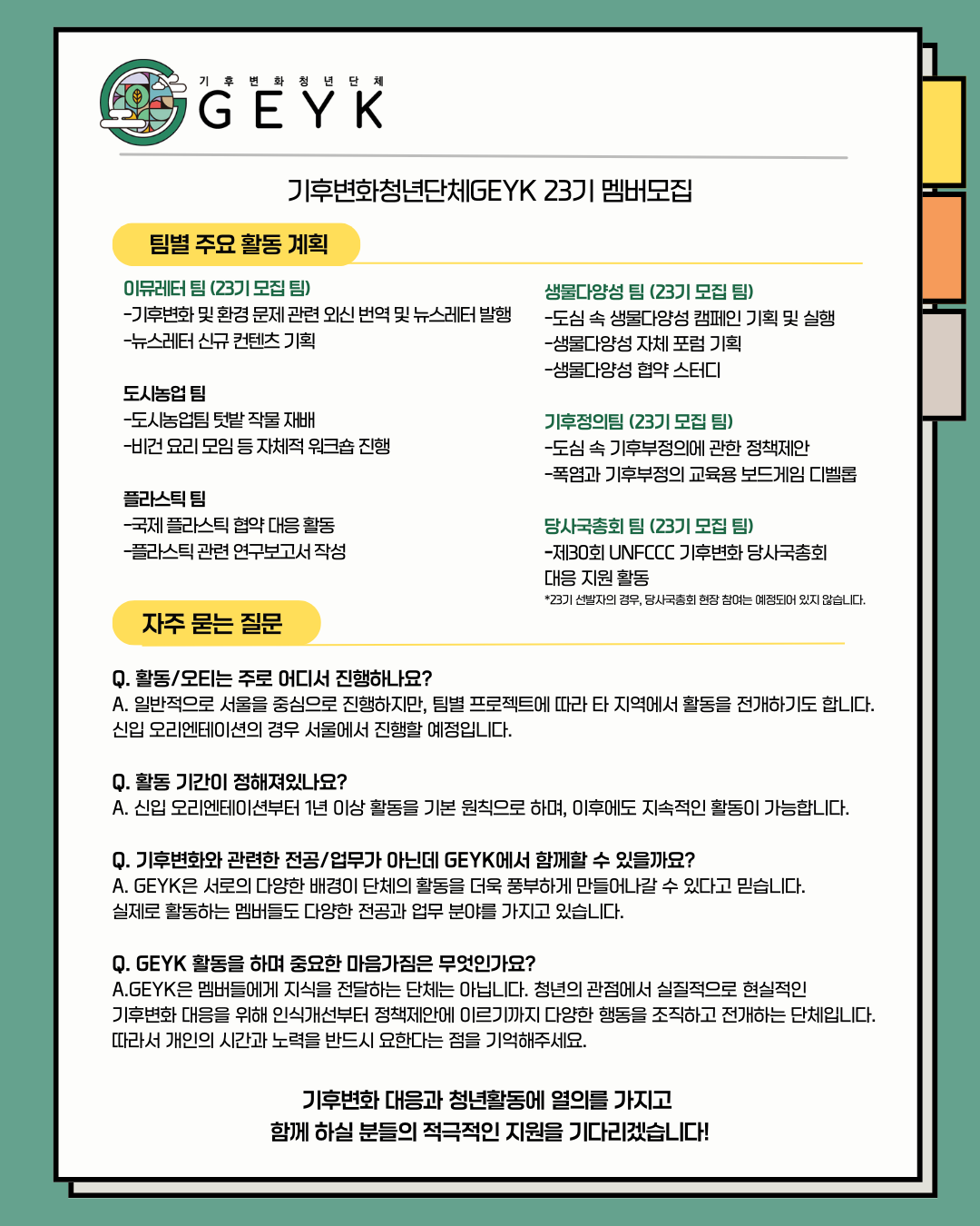 ๋๋ค. ์์ ์๊ฒฌ ํ๋๊ฐ ๋ชจ์ฌ ๊ณผํ๊ณผ ์ ์๋ฅผ ์งํค๋ ํฐ ํ์ด ๋ ์ ์๋ค๋ ์ฌ์ค์ ์์ง ๋ง์์ผ ํ๊ฒ ์ฃ .